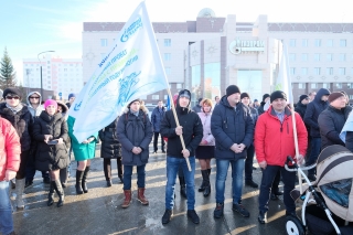 На торжественном митинге в честь старта снегоходного пробега на площади у административного здания Общества «Газпром добыча Уренгой»